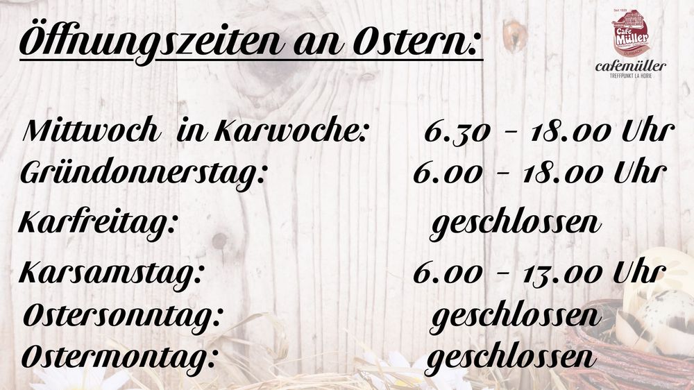 Öffnungszeiten Ostern im La Horie